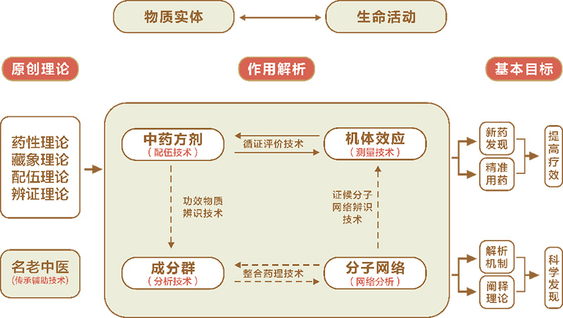 中成药复杂作⽤解析,作为中医药现代化研究的前沿领域,致⼒于深⼊探索传统中药制剂在⼈体内复 杂⽽精细的⽣物作用网络。系统性地解析中成药中复杂成分群(包括活性化合物、次⽣代谢产物等)与⼈体多靶点群之间的相互作⽤,以及这些相互作⽤如何在微观层⾯上⾼效且精确地调控⽣理病理过程。这⼀过程不仅跨越了从分子到细胞,再到组织、器官乃至整体机体的多层次研究,还融合了现代⽣物科技与传统中医药理论的精髓。