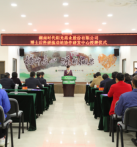 On the morning of December 18, the licensing ceremony and post-doctoral opening report of Hunan Times Sunshine Pharmaceutical Co., Ltd.'Collaborative Research and Development Center of Post-doctoral Research Mobile Station'were held at Times Sunshine Yongzhou Production Center.