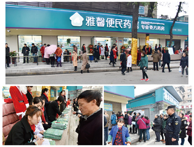 Today is December 24, the annual Christmas Eve. In Nanyuan Palace Lane near the Second Xiangya Hospital of Central South University on Renmin Zhonglu, crowds gathered before 8 a.m. Today is the grand opening day of Yaxin Convenient People's Pharmacy, a professional prescription pharmacy. Many hospital patients and neighboring residents rushed to attend the free clinic held by the pharmacy for the first time to select and purchase the necessary drugs.
